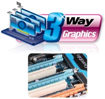 Гибкие графические решения - поддержка трех GPU в режиме 3-way SLI или 3 way CrossFireX™ , вы можете поднять на максимум настройки качества и разрешение, повысив производительность. Пользователи могут воспользоваться мощью нескольких GPU. Технологии 3-way SLI и 3 way CrossFireX™ означают, что вам больше не придется снижать настройки качества в новейших играх.